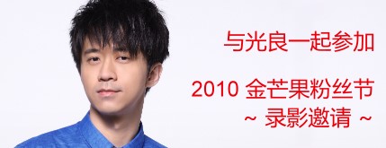 12月29日前,在XYmusic.com報名參加2010金芒果粉絲節,就有機會跟光良一起錄製2010年1月2日在湖南衛視直播的《2010金芒果粉絲節》!